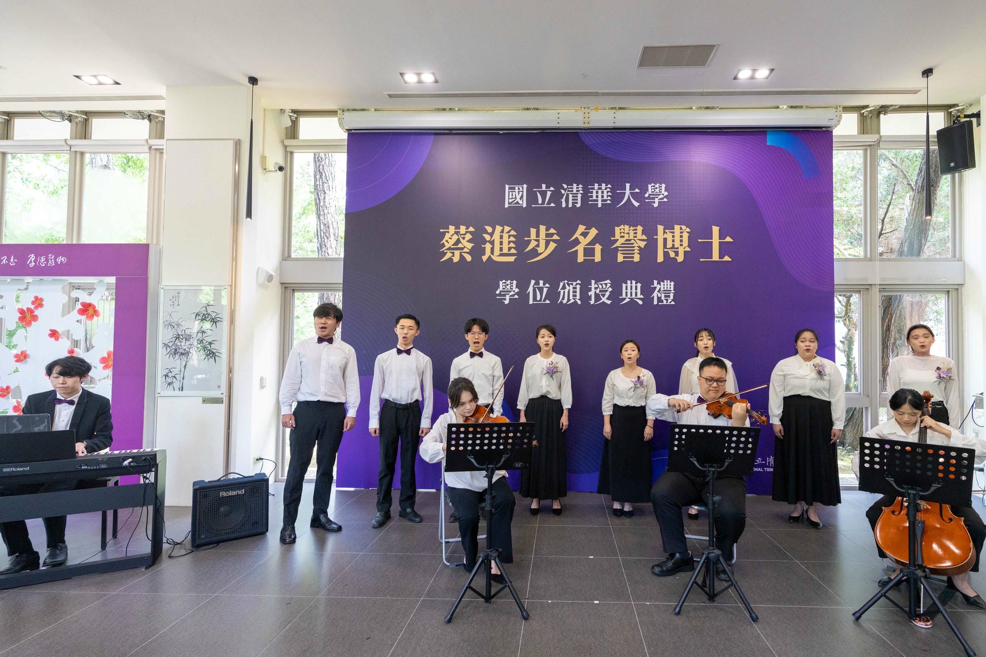 During the grand and heartwarming ceremony, students from the Department of Music sang songs such as “What I like” and “For the Love of NTHU,” accompanied by a piano trio and string quartet.