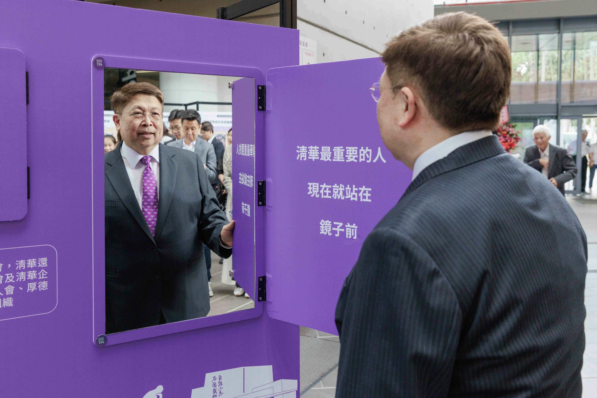 One of the highlights of the event was an interactive installation in the lobby of the International Conference Hall (Macronix Building) that showed the distribution of NTHU alumni associations around the world, flanked by flip windows asking questions such as, "Who is the most important person at NTHU?" Upon flipping the window open and seeing oneself in a mirror, the answer is self-evident.
