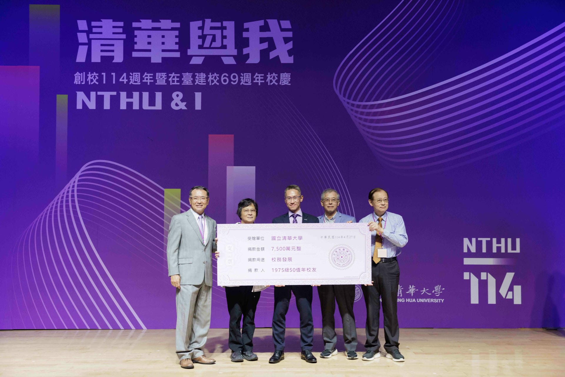 During the event, a donation of NT$75 million was presented by representatives of the class of 1975 from the Departments of Nuclear Engineering, Physics, Chemistry, and Mathematics, showing their deep affection and support.